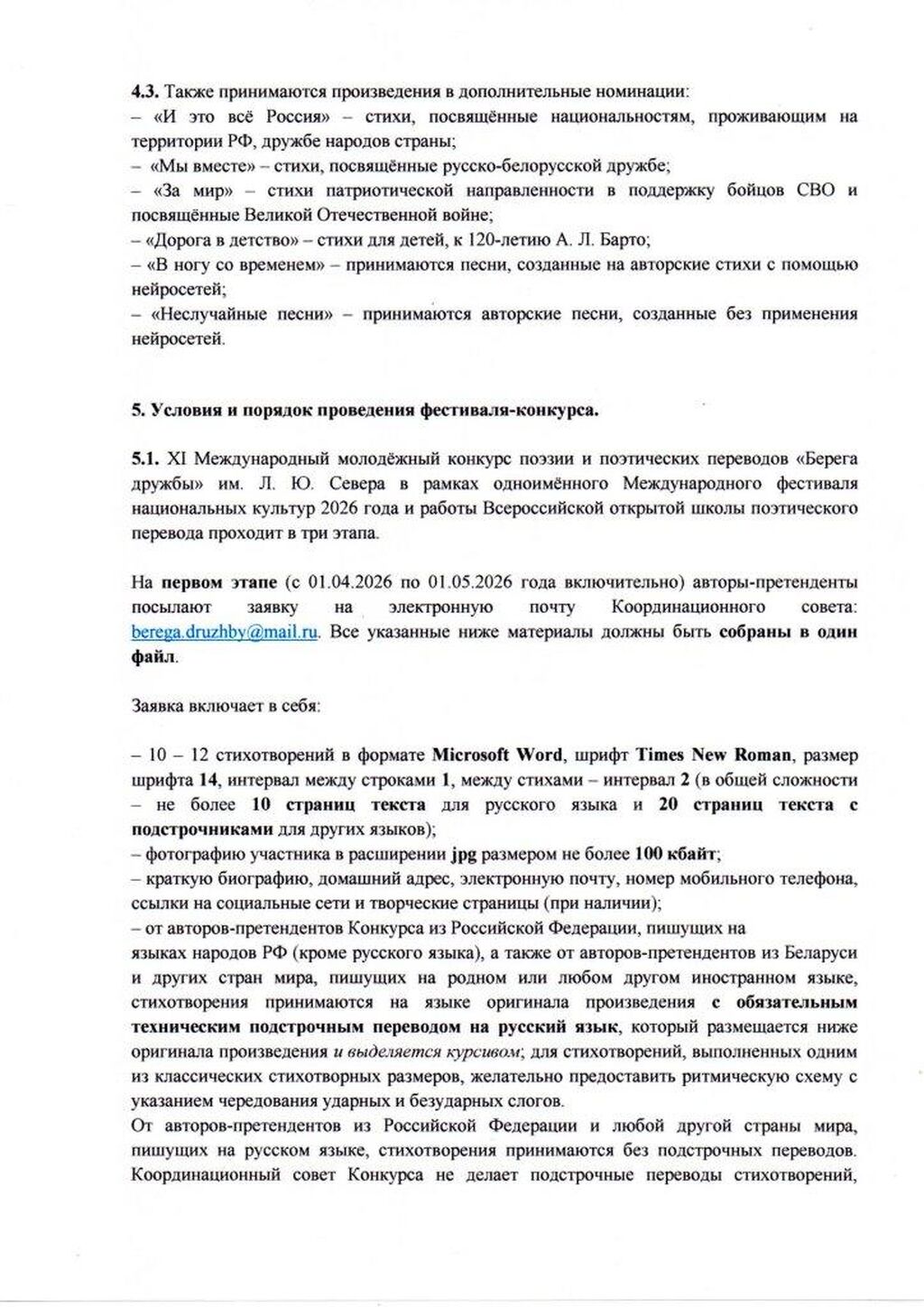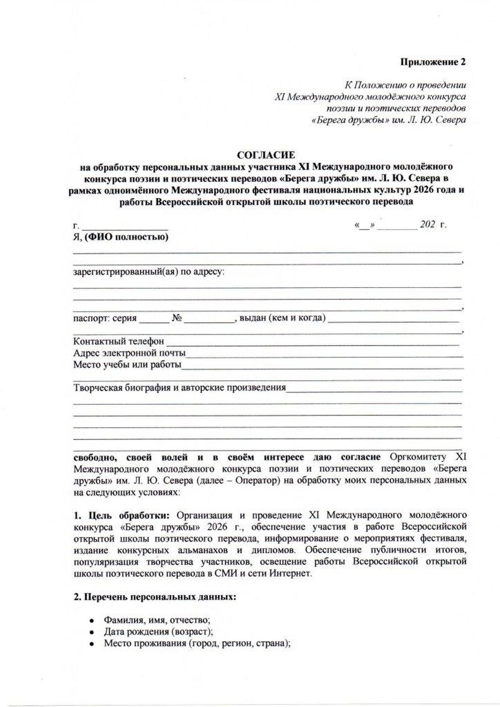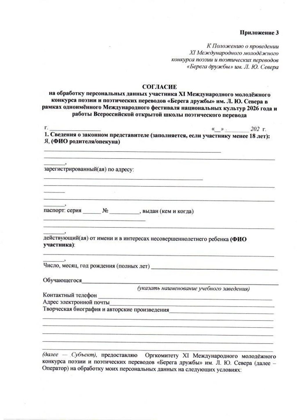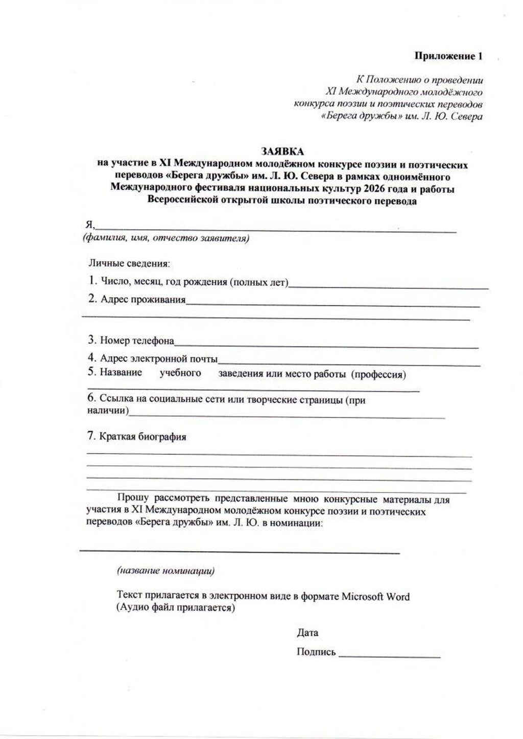 С 1 апреля 2026 открыт приём заявок на участие в XI Международном молодёжном конкурсе поэзии и поэтических переводов «Берега дружбы» им. Л. Ю. Севера.